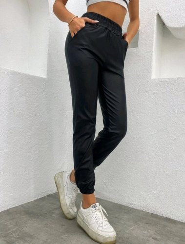 • Kadın paçası lastikli cep detaylı deri tayt pantolon