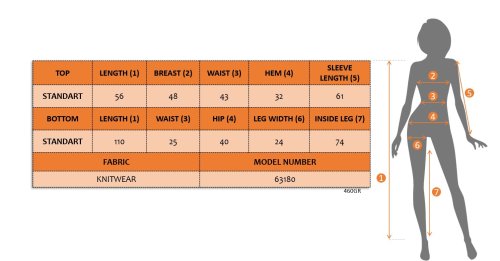 • Modelin Ölçüleri: Boy:165, Kilo:55, Göğüs:90, Bel:72, Kalça: 100